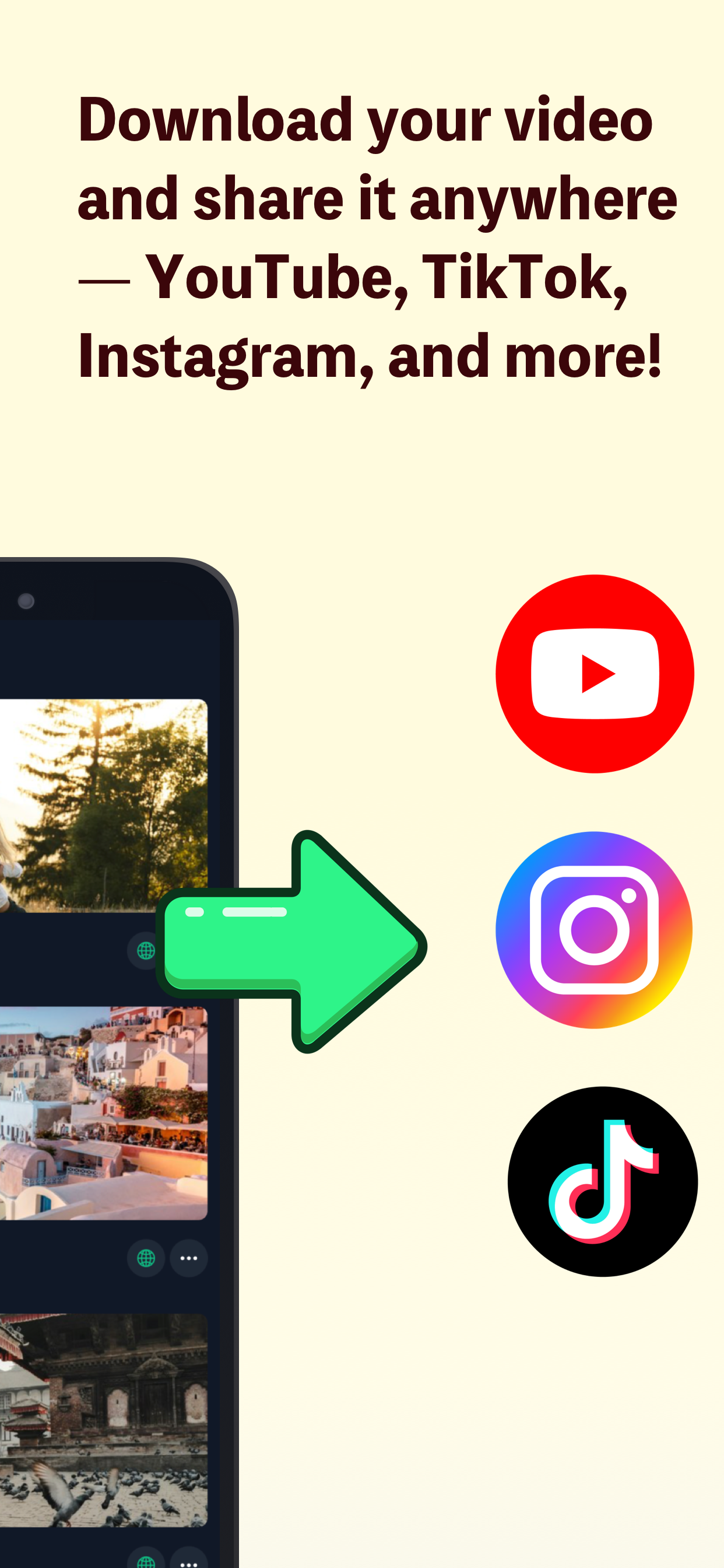 Share your videos on YouTube, TikTok, Instagram, and more